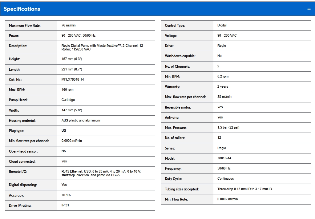 MasterflexLive® is a secure, cloud-enabled platform for monitoring Masterflex pumps; get real-time notifications of pump parameters – including speed, flow rate, dispense volume, and more. You can monitor critical processes running 24/7 without the need for onsite personnel while push notifications alert you to operating conditions and error messages.