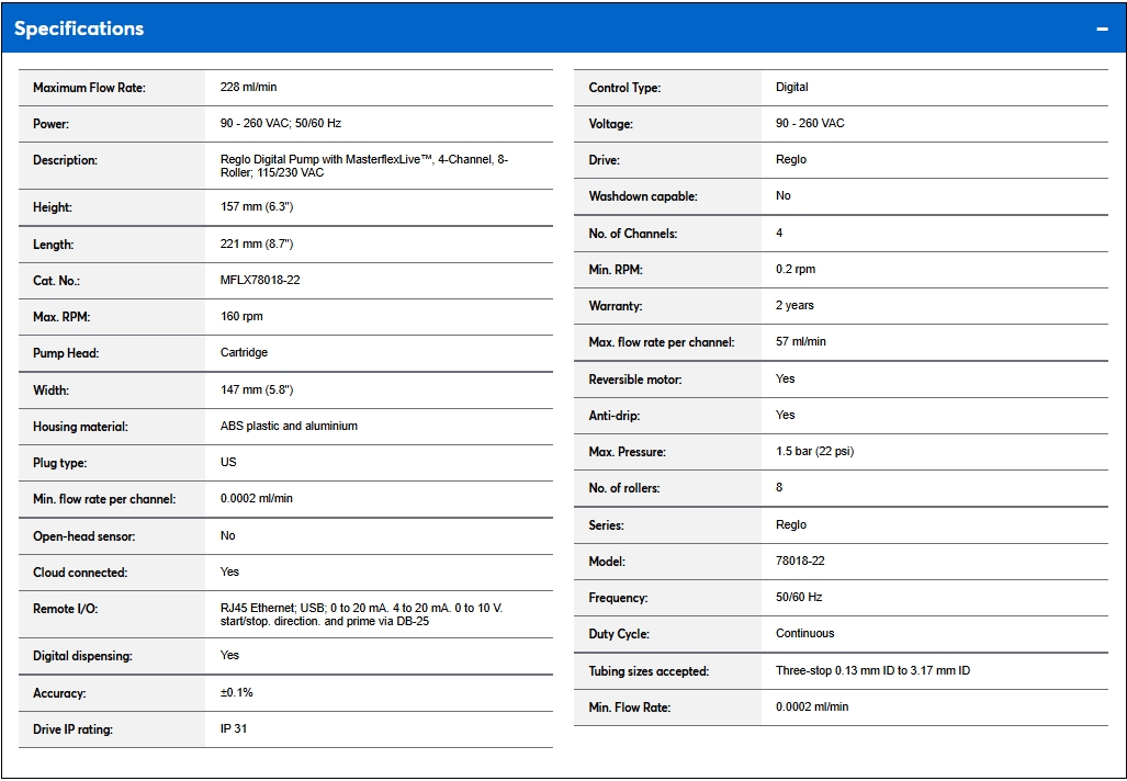 MasterflexLive® is a secure, cloud-enabled platform for monitoring Masterflex pumps; get real-time notifications of pump parameters – including speed, flow rate, dispense volume, and more. You can monitor critical processes running 24/7 without the need for onsite personnel while push notifications alert you to operating conditions and error messages.